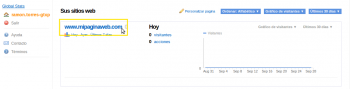 Luego de hacer login con nuestros datos, veremos una pantalla como la que se muestra en la siguiente imagen, esta pantalla vera una gráfica con el resumen de sus visitas de los últimos días, luego haremos clic en el nombre de nuestra página web.
